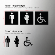 Male Female Accessible WC Door Sign Vinyl • Pack of 3 • 6 Styles Available