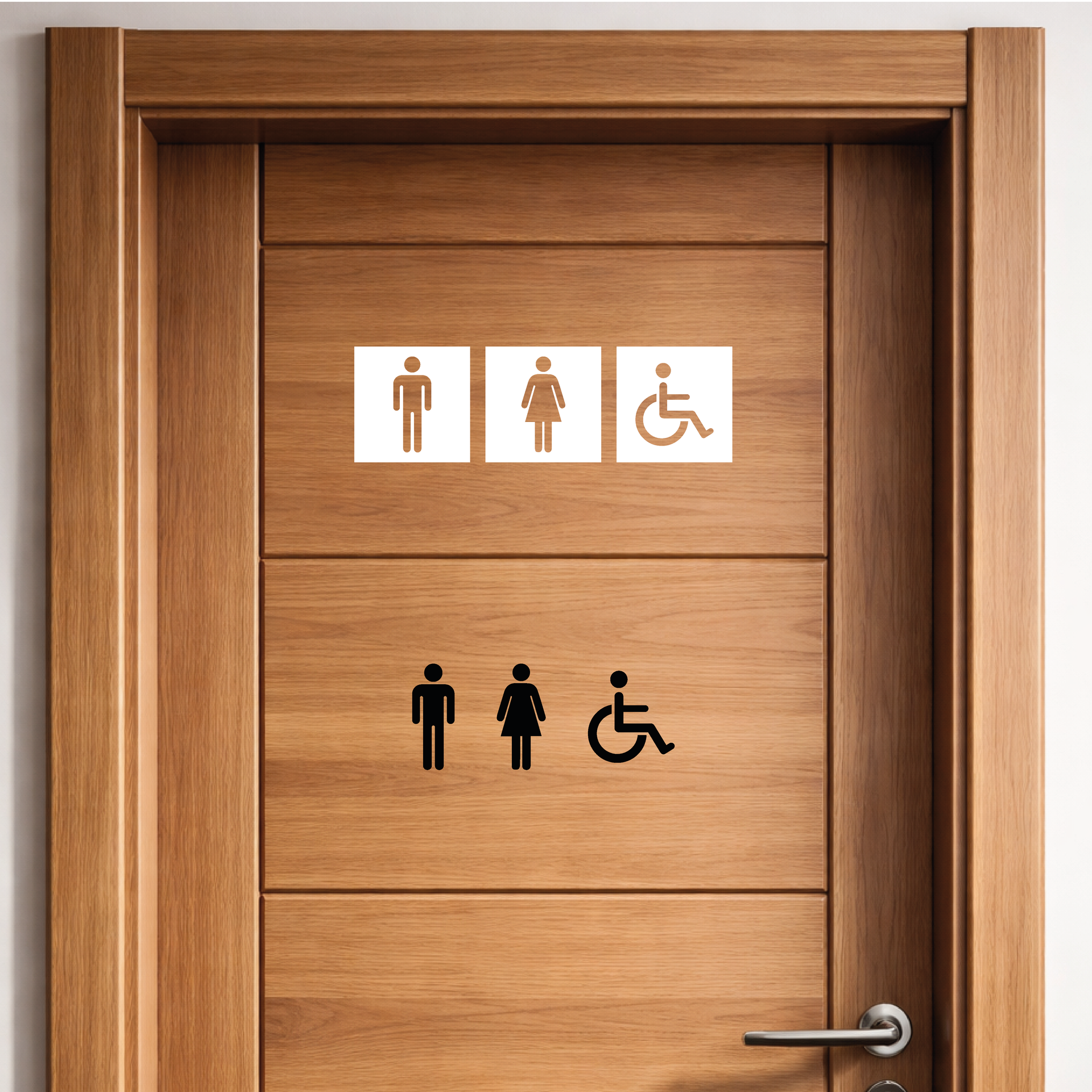 Male Female Accessible WC Door Sign vinyl decals designed for clean, professional signage on internal doors, toilets, and commercial spaces.